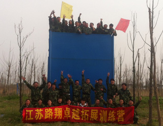 體驗(yàn)式戶外拓展訓(xùn)練是路翔企業(yè)新人入司后必須參加的培訓(xùn)項(xiàng)目之一。3月30日,路翔企業(yè)近三年新入司人員及公司總部相關(guān)人員一行35人,帶著激情和期待,在副總經(jīng)理?xiàng)钗谋虻膸ьI(lǐng)下,相聚如皋港藥用植物園基地,參加了為期一天團(tuán)隊(duì)拓展培訓(xùn)。 早晨7:00,我們的專車迎著朝陽(yáng)準(zhǔn)時(shí)從公司出發(fā)。由于此次訓(xùn)練營(yíng)的成員來(lái)自不同的分公司,有的平時(shí)工作接觸很少甚至沒(méi)有接觸,楊總首先向大家介紹了這次訓(xùn)練營(yíng)的人員情況,這次訓(xùn)練營(yíng)是公司組織的第5次拓展訓(xùn)練營(yíng),也是公司有史以來(lái)人員組成最年輕、學(xué)歷層次最高的一次,希望大家能夠全身心投入、挑戰(zhàn)自我、突破自我。接著,大家爭(zhēng)先恐后地依次介紹了自己的名字、部門、崗位、愛(ài)好、特長(zhǎng)等,氣氛非常熱烈,短短的40分鐘車程就在這樣輕松愉快的氛圍中不知不覺(jué)的過(guò)去了。 上午8:00,我們到達(dá)了這次訓(xùn)練的目的地——如皋港藥用植物園基地。剛放下行囊,大家就馬不停蹄地?fù)Q上統(tǒng)一的迷彩服,然后在教練的組織下開(kāi)始了“破冰”行動(dòng),有趣的熱身運(yùn)動(dòng)后,開(kāi)始分小組、起隊(duì)名、選隊(duì)長(zhǎng)、設(shè)計(jì)隊(duì)徽、隊(duì)呼、隊(duì)歌。不到10分種,當(dāng)“飛翔隊(duì)”、“拼搏隊(duì)”分別以昂揚(yáng)的斗志舉著隊(duì)旗、呼著隊(duì)呼、唱著隊(duì)歌、以獨(dú)特的造型展現(xiàn)著各自風(fēng)采的時(shí)候,每一個(gè)隊(duì)員的臉上都洋溢著不一樣的光彩,似乎對(duì)今天行程有了一種別樣的期待。 首先,進(jìn)行的是“信任背摔”,當(dāng)每一個(gè)伙伴站在1.8米的跳臺(tái)邊緣直直向后摔下的時(shí)候,當(dāng)每一個(gè)伙伴被同伴們穩(wěn)穩(wěn)地接住的時(shí)候,不時(shí)爆發(fā)出一陣陣的吹呼聲。正如伙伴們所說(shuō):“接人是一種責(zé)任,被人接是一種幸!,“我相信我的伙伴們、也相信我自己”。
