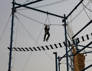 接著,進(jìn)行的是“高空抓杠”,看到那空中搖晃的單杠和那高高的鋼管,每一個(gè)伙伴都大膽進(jìn)行了嘗試,沒(méi)有一個(gè)人退縮,當(dāng)每一個(gè)伙伴從10多米高的鋼管頂部站起來(lái)、飛身去抓單杠的時(shí)候,伙伴們都毫不吝嗇地大聲喝彩和鼓勵(lì)!斑@種感覺(jué)我會(huì)終身難忘,我想如果沒(méi)有親身體會(huì)的人是永遠(yuǎn)不能有這種感受的!边@是伙伴下來(lái)后說(shuō)得最多的一句話。 最后一個(gè)項(xiàng)目是畢業(yè)墻,面對(duì)4米高的無(wú)任何攀扶點(diǎn)的畢業(yè)墻和20分鐘的規(guī)定時(shí)間,兩個(gè)隊(duì)一下了團(tuán)結(jié)在了一起。聽(tīng)完教練的講解,行動(dòng)就正式開(kāi)始了。“我先上…我在下面…你先上…女同胞上…體重大的上…誰(shuí)倒掛…我…誰(shuí)最后…我…”驚心動(dòng)魄的19分16秒過(guò)后,所有伙伴全部通過(guò)畢業(yè)墻。當(dāng)大家站在畢業(yè)墻前分享時(shí),許多人都不記得是誰(shuí)在上面拉自己的,誰(shuí)在下面推自己的,但是大家都記住了2013年3月30日這個(gè)經(jīng)歷心理和生理嚴(yán)峻考驗(yàn)的終身難忘的日子,記住了我們團(tuán)隊(duì)中的每一個(gè)生死與共的患難伙伴,我們已經(jīng)是具有堅(jiān)不可摧的路翔團(tuán)隊(duì)。