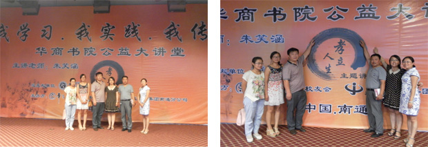 8月26日,我們來自路翔企業(yè)各部門、分公司的代表一行6人在南通安惠會議中心參加了華商書院校友會發(fā)起并主辦的“我學(xué)習(xí)!我實(shí)踐!我傳播”首屆國學(xué)公益講座“孝立人生”,講座由著名學(xué)者、清華大學(xué)朱笑涵博士主講。朱笑涵博士引經(jīng)據(jù)典,用生動、風(fēng)趣、感人的語言和互動,帶領(lǐng)我們度過了快樂而又難忘的一天。 通過一天的學(xué)習(xí),我們深刻認(rèn)識到:“孝”不僅僅體現(xiàn)在對父母,長輩的相處之中,更反映在人與人的和諧相處中。一個人的品德修養(yǎng)是從一點(diǎn)一滴開始積累,最基礎(chǔ)的積累是從家庭開始的。懂得了孝道,進(jìn)入社會以后就知道如何處理人際關(guān)系,對上級服從尊重,對同事友好互助,也是一種孝的體現(xiàn)!案卸鳌笔恰靶ⅰ蔽幕闹匾獌(nèi)涵部分,人常說“滴水之恩,當(dāng)涌泉相報”。作為子女,我們首先要學(xué)會感恩父母,是他們把我們撫育成人,同樣作為企業(yè)的員工,我們應(yīng)該感恩公司,是公司引領(lǐng)我們成長,我們應(yīng)該忠誠于自己的公司,對外展現(xiàn)的一言一行所代表的是企業(yè)而不是個人,更要謹(jǐn)言慎行,對得起公司對我們的信任,正如朱笑涵老師所說的,做一個讓人放心的人。(朱洪鋼)