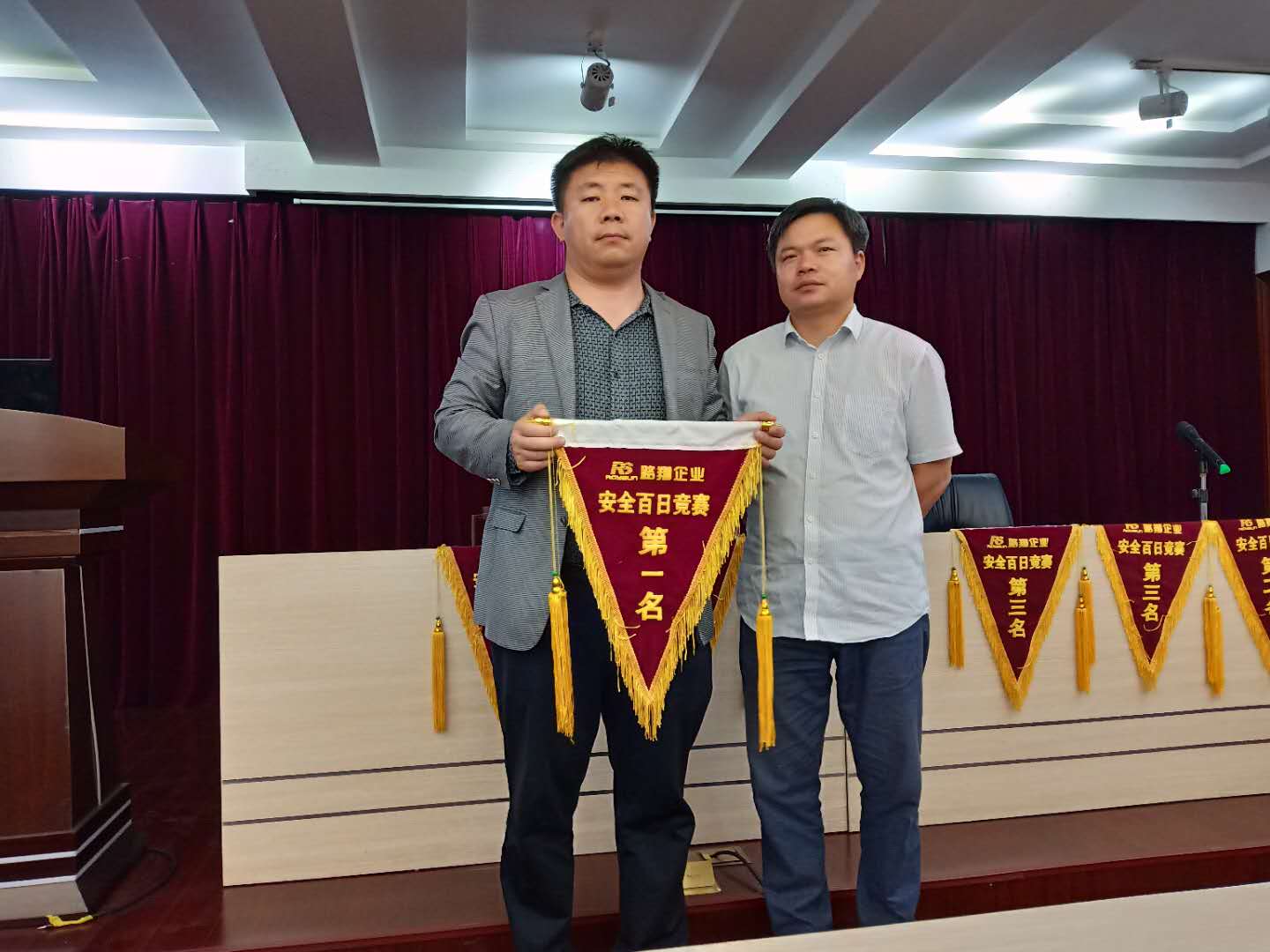 最后,公司安全設(shè)備部部長(zhǎng)薛建華向排名前六的作業(yè)組授予了流動(dòng)紅旗,授予檢測(cè)公司一等獎(jiǎng),603省道項(xiàng)目部、混凝土公司二等獎(jiǎng),交安分公司、建養(yǎng)一體化2標(biāo)、日常養(yǎng)護(hù)作業(yè)組三等獎(jiǎng)。