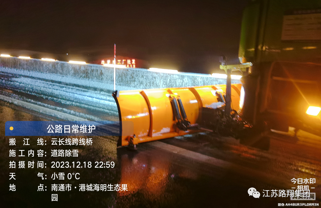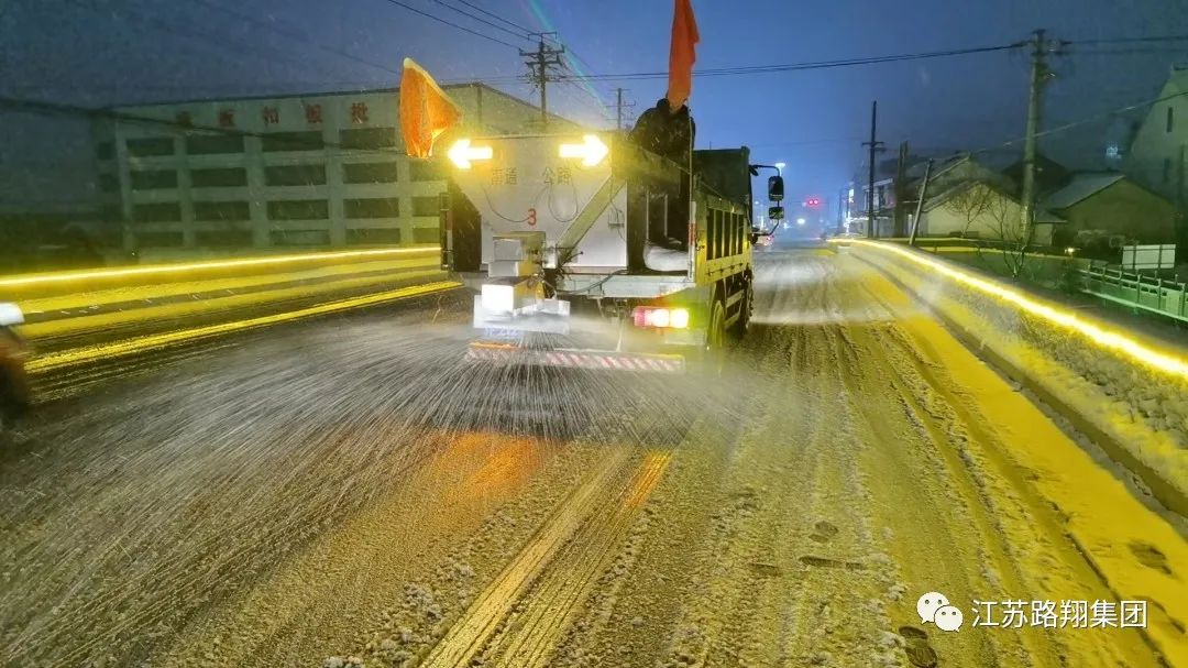 12月18日我市迎來(lái)大范圍降雪,同時(shí)如皋氣象臺(tái)發(fā)布暴雪藍(lán)色預(yù)警信號(hào)、道路結(jié)冰黃色預(yù)警信號(hào)。路翔公司及時(shí)啟動(dòng)雨雪冰凍等惡劣天氣應(yīng)急預(yù)案,迅速調(diào)配機(jī)械設(shè)備、人員開(kāi)展融雪、清雪、除冰工作。重點(diǎn)突出國(guó)省干線、橋梁除雪保暢工作,實(shí)施融雪劑重點(diǎn)布撒作業(yè),防止路面結(jié)冰。